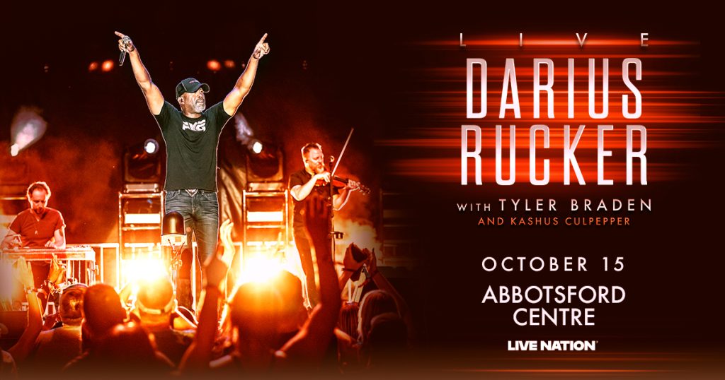Don’t miss Darius Rucker Live in Abbotsford with guests Tyler Braden and Kashus Culpepper! He’s kicking off the Canadian leg of the tour at Abbotsford Centre on October 15th!